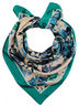 Женский платок итальянского бренда VENERA из полиэстера. Платок в изумрудно-синих тонах с цветочным принтом и изумрудным кантом, аккуратная машинная обработка края. Непрозрачный платок гладкой атласной текстуры, нескользящий. Размер: 90х90 см.