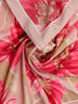 Женский платок итальянского бренда VENERA из 100% полиэстера. Платок бежевого цвета с растительным принтом в виде крупных цветов розового цвета, гладкая атласная фактура, хорошо драпируется. Аккуратная машинная подшивка края. Размер: 90х90 см.