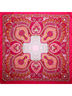 Роскошный розовый платок из полиэстера. Платок выполнен в розовом цвете с принтом пейсли. Изделие в восточном стиле придаст вашему образу женственности и элегантности. Размер: 90х90 см.