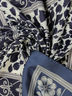 Синий платок с комбинированным орнаментом - в центре анималистический принт, по краям орнамент из вензелей. Платок из высококачественного итальянского полиэстера, средней плотности, с легким сатиновым блеском, подшивка края - машинная строчка. Размер: 90х90 см.