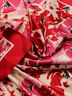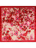 Женский платок итальянского бренда VENERA из полиэстера. Платок в красно-розовых тонах с цветочным принтом и тёмно-красным кантом, аккуратная машинная обработка края. Непрозрачный платок гладкой атласной текстуры, нескользящий. Размер: 90х90 см.