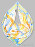 Платок из новой коллекции, выполнен из плотного шелка и имеет геометрическую расцветку. При оформлении имеет ничем не обязывающий вид. Идеальный вариант для брючного или юбочного костюма. Размер: 90*90.