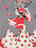 Платок из новой коллекции зима 2015, выполнен из плотного шелка крепа, имеет рисунок танцующей цыганки Оливии с веером в руках, по канту оформлен витиеватым узором из красных сердечек. Данная модель не скользит. Размер: 68*68.