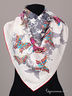 Легкий платок из натурального шелка. Спокойные тона основного поля дополняются яркими бабочками и стрекозами, что делает этот платок изящным и оригинальным.