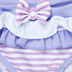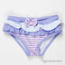 Плавки для девочки. В поясе вставка из широкой резинки, изделие украшено оборками и принтом.