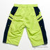 Модель прямого кроя завязывается шнурками. В пояс вшита резинка. Вшиты сетчатые трусики. Два боковых кармана на липучке. Декоративная аппликация на брючине. Контрастные боковые вставки.