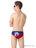 Комбинированные плавки для мальчиков. Удобная модель комфортной посадки с узким бочком и цветным шнурком потайного типа по отрезному поясу изделия. Модель выполнена в сложной технике детального размещения рисунка, что позволяет достичь оригинального сочетания цвета в принте "Дикий вепрь и гладиатор".