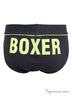 Темно-серые плавки с яркой отделкой. Изделие оформлено контрастным принтом.