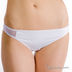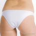 Белые узкие плавки на бедрах. Отделка в виде сетки.