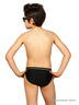Спортивные плавки для мальчиков. Удобная модель комфортной посадки с поясной резинкой "запакованного" типа и ярким потайным шнурком. Изделие декорировано контрастной отстрочкой и флуоресцентными кантами. Стильный дизайн завершает разноцветный логотип на передней детали плавок.