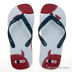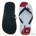 Мужские сланцы De Fonseca c "дьявольски" привлекательным рисунком. Подошва кажется многослойной, из-за того что в ней сочетаются красный, белый и черный цвета. Синие ремешки верха контрастно выделяются на белом фоне основы. Идеальная обувь для пляжа.