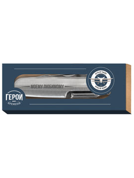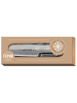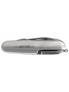 Нож туристический с надписью "Мой герой" Be Happy, цвет серебристый