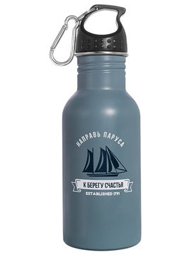 Бутылка с надписью "Направь паруса к берегу счастья", 500 мл Be Happy, цвет голубой