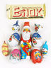 Новогодний подарок очарует любого малыша своей яркой, разноцветной упаковкой. Прекрасный вариант поздравления детей на утренниках в детских садах и школах. Дед Мороз -1 шт(60г), игрушки 13 гр. (4 шт.), игрушка 20 гр (4 шт.), молочный шоколад "Блок" 100гр (1шт.) Размер: 28х15х7, 5 см.