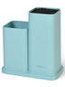 Подставка с двумя отделениями изготовлена из прочного пластика. Для фиксации положения инструмента внутри предусмотрена соломка из экологически безопасного материала.