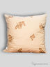 Верхний чехол тик с кантом на молнии. Внутренняя подушка - спандбонд, стеганый с верблюжьей шерстью, набитая холлофайбером. Размер: 70х70.