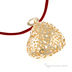 Красивая женская подвеска в виде золотого сердечка на текстильном красном шнурке.