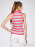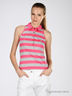 Трикотажная футболка-поло без рукавов из натурального 100% хлопка. Отложной воротник на стойке. На полочке планка-застежка на пуговицах. Футболка декорирована люрексом. Комфортная и стильная модель.