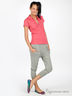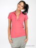 Футболка-поло приталенная. Сборка на планке на груди, и сзади на кокетке на спине. Маленькие карманы из другой по составу ткани с маленькими кнопками.
