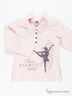 Футболка поло прямого силуэта для девочки. Изделие с отложным воротником и застежкой на кнопки. Полочка украшена принтом.