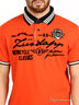 Поло прямого силуэта с воротом из трикотажа "пике". Манжеты - трикотажные резинки. Застежка на три пуговицы. Полочка декорирована нашивкой и аппликациями.