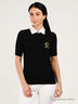 Детали: отложной атласный воротник, застежка на планку с пуговицами, короткие прямые рукава, нагрудный карман с принтом.