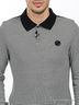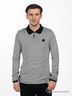 Рубашка поло с отложным воротником и застежкой на пуговицы. Манжеты рукавов выполнены из трикотажной резинки. На полочке расположена нашивка и металлическая вставка.