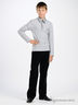Модель прямого кроя с отложным воротом застегивается на пуговицы. Декоративная нашивка на полочке.
