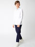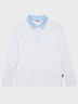 Белое поло с длинным рукавом из пике - прекрасная альтернатива белой сорочке. Если в школе нет торжественных мероприятий, но важно соблюдать дресс-код в формате белый верх-темный низ, белое поло - прекрасный вариант. Голубая отделка делает поло интереснее и свежее. Брендированная фурнитура придает модели особый шарм. С любыми брюками, пиджаком, кардиганом, поло составит комфортный комплект, сделав образ школьника интересным и динамичным.
