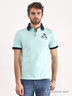 Отличное поло из хлопкового трикотажа. Стояче-отложной ворот. Застежка на пуговицы. Короткие рукава. Ворот и манжеты рукавов дополнены контрастной полосой. На полочке небольшой рисунок. Разрезы в боковых швах.