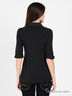 Оригинальное поло с укороченным рукавом, отложным воротом и застежкой на три пуговицы. Изделие выполнено из трикотажа средней плотности с добавлением шерсти. Декоративные отвороты украшены прихватами со стразами. Будьте стильной и женственной.