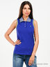 Детали: отложной воротник стойка, застежка на три пуговицы, без рукавов, полочка декорирована брендовой вышивкой.