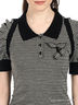 Детали: отложной ворот, короткий рукав-реглан с трикотажной манжетой, застежка на пуговицы, декоративная брошка на полочке