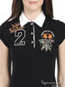 Детали: отложной воротник, застегивается на пуговицы, короткие рукава, украшено принтами, нашивками и вышивкой
