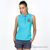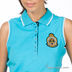Поло без рукавов. Пройма рукавов отделана трикотажной резинкой в рубчик. Отложной воротник отделан резинкой в рубчик, застегивается на пуговицы. Разрезы внизу по бокам. Нашивка на груди.