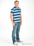 Классическое поло в полоску. Шеврон на плече. Однотонный воротник и манжеты на рукаве.
