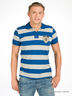 Классическое поло в полоску. Шеврон на плече. Однотонный воротник и манжеты на рукаве.