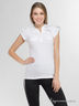 Легкое трикотажное поло, с отложным воротником, погонами, украшенными стразами и двумя кармашками с клапанами на груди придаст вам оригинальности и шарма.