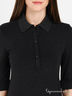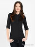 Оригинальное поло с укороченным рукавом, отложным воротом и застежкой на три пуговицы. Изделие выполнено из трикотажа средней плотности с добавлением шерсти. Декоративные отвороты украшены прихватами со стразами. Будьте стильной и женственной.