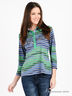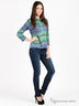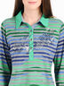 Оригинальное поло с длинным рукавом и рубашечным воротом застегивается на три пуговицы на полочке. Изделие украшено принтами и стразами. Яркий вариант на каждый день.