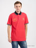 Однотонная футболка-поло из пике с короткими рукавами. Отстрочка под планкой, двухцветные воротник и манжеты, вышивка "yatch club" + вышивка "Sailing" справа, боковые разрезы.