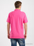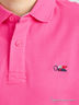 Однотонная футболка-поло из пике с короткими рукавами, отстрочка под планкой, вышивка "флаг", темно-синий кант под воротником, боковые разрезы.