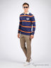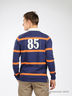Теплое трикотажное поло с длинными рукавами. Отложной хлопковый воротник на стойке. Планка-застежка на пуговицах. Манжеты и низ изделия посажены на трикотажную резинку. На полочке вышивка.