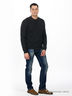 Детали: V-образный вырез с отложным воротником в рубчик, длинные рукава с манжетами, низ изделия посажен на манжет в рубчик, застежка на пуговицы
