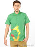 Детали: поло на четырех пуговицах, втачной отложной воротник из трикотажной резинки, короткий рукав, кричащий принт с лицевой стороны.