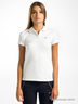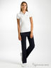 Рубашка-поло женская белого цвета. Выполнена из трикотажной ткани "пике". Классический крой. Отложной трикотажный воротник в мелкий рубчик. Планка-застежка на пуговицах.