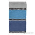 Яркие и необычные по форме предметы изготовлены из керамики и украшены изящным орнаментом в виде решетки. Низ предметов акцентирован широкой голубой полосой. Орнамент повторяется на шторке, коврике и жаккардовых полотенцах.