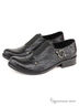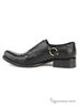 Стильные мужские полуботинки в комбинации из натуральной черного цвета кожи с формоустойчивым текстилем черного цвета. Стилистику милитари подчеркивает выразительный элемент с металлическим кольцом на ремешках, фиксирующиеся металлическими холнитенами.