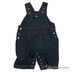 Полукомбинезон джинсовый на широких бретелях, отстегивающихся спереди. Застежки на пройме и по бокам. Втачной пояс со шлевками для ремня.