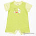 Полукомбинезон прямого силуэта с округлым вырезом горловины и коротким рукавом. Застежка на кнопки на спинке и классическая боди-застежка на кнопки в пройме. Полочка декорирована аппликацией.